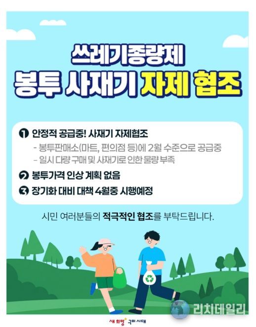 리치데일리 김상현 기자 | 구미시가 중동 사태 장기화에 따른 나프타 수급 불안으로 전국적으로 확산되는 쓰레기 종량제봉투 사재기 움직임에 선제 대응에 나섰다.