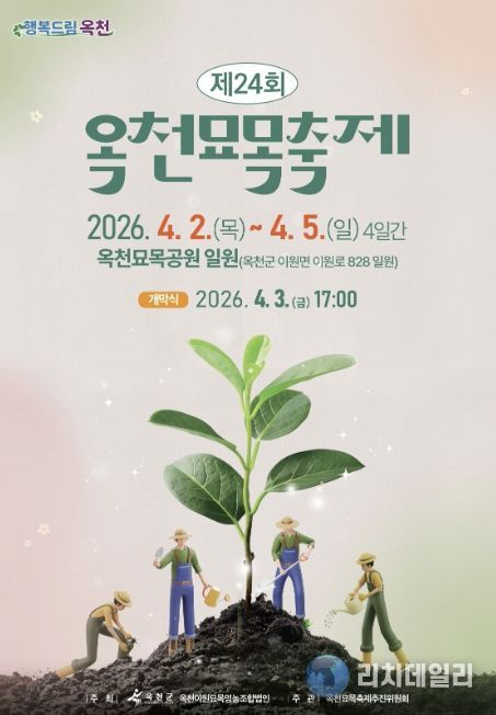 리치데일리 김상현 기자 | 옥천군은 오는 4월 2일부터 5일까지 4일간 옥천묘목공원(이원면 이원로 828) 일원에서 제24회 옥천묘목축제를 개최한다. 올해 축제는 기존 3일에서 하루 연장해 총 4일간 진행되며, 체험 중심 프로그램과 다양한 공연, 볼거리로 방문객을 맞이할 예정이다.