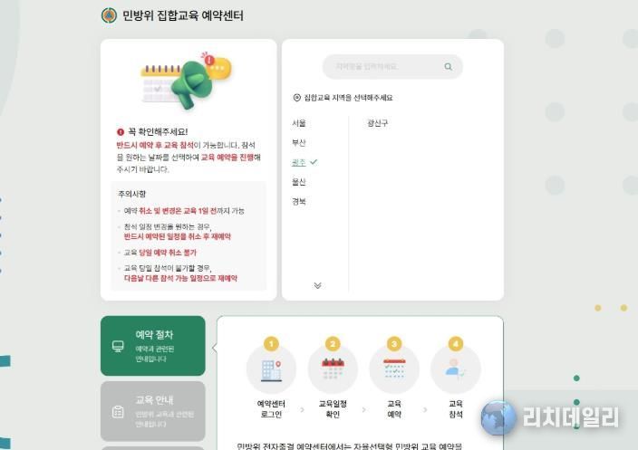 리치데일리 김상현 기자 | 광주 광산구가 민방위 대원들의 교육 참석률을 높이고 편의를 크게 높이기 위해 광주·전남 최초로 ‘자율선택형 민방위 교육 예약 시스템’을 도입했다.