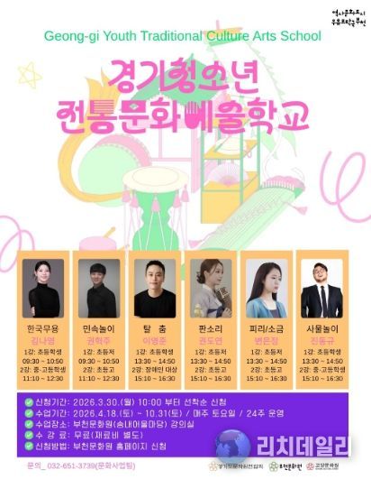 리치데일리 김상현 기자 | 부천문화원은 청소년들의 전통문화 참여 기회를 확대하고 경기지역 전통민속예술의 지속 가능한 전승 기반 마련을 위한 ‘2026 경기청소년전통문화예술학교’ 참여 학생을 모집한다.