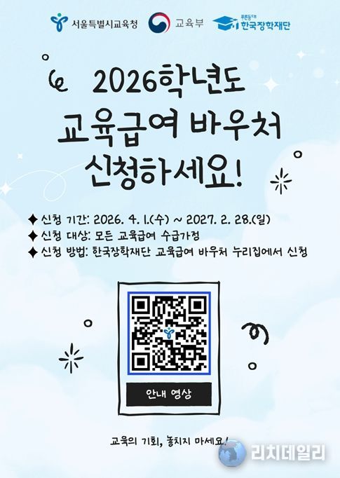 리치데일리 김상현 기자 | 서울특별시교육청은 저소득층 가정 학생들이 경제적 부담 없이 학업에 전념할 수 있도록 돕는 ‘2026학년도 교육급여 바우처’를 오는 4월 1일부터 내년 2월 28일까지 교육급여 바우처 전용 누리집에서 신청할 수 있다고 밝혔다.