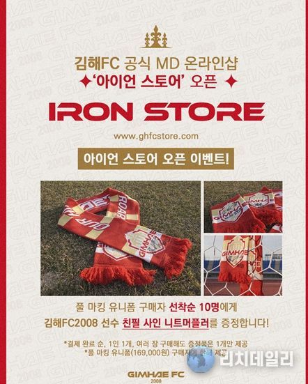 리치데일리 김상현 기자 | 김해FC2008이 31일 오후 2시 공식 온라인몰 ‘아이언 스토어 를 오픈하여, 팬들의 구매 편의성 증대 및 상품화 사업 강화에 나선다.