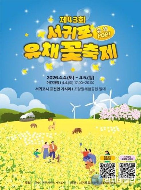 리치데일리 김상현 기자 | 서귀포시가 주최하고 서귀포유채꽃축제조직위원회가 주관하는 ‘제43회 서귀포유채꽃축제’가 4월 4일부터 4월 5일까지 이틀간 표선면 가시리 조랑말체험공원 일원에서 개최된다.