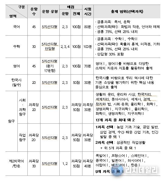5. 국어와 영어 영역은 출제 범위를 바탕으로 다양한 소재의 지문과 자료를 활용하여 출제함.