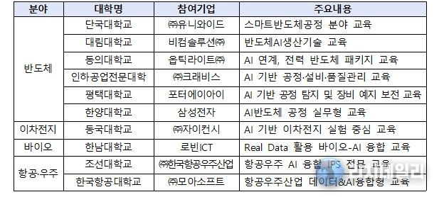 올해는 인공지능 대전환(AX)에 대응하고, 첨단분야 학생들의 인공지능(AI) 융합 역량을 제고하기 위하여, 인공지능(AI) 융합과정 지원 내용이 신설됐다. 이에 따라, 반도체, 바이오 등 첨단산업 인재양성 부트캠프를 운영하고 있는 기존 대학 중 10개교가 선정되어 5억 원을 추가로 지원받는다.