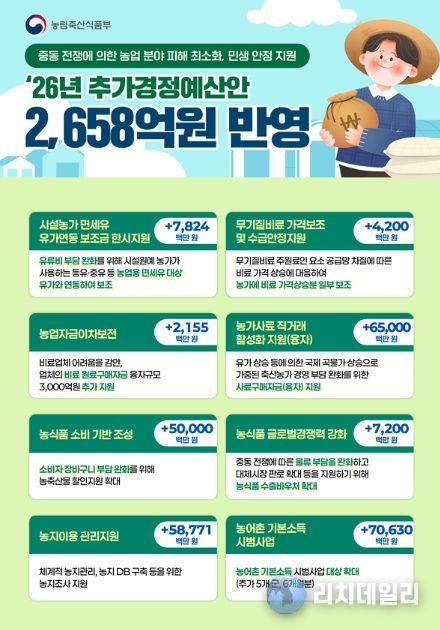 리치데일리 김상현 기자 | 농림축산식품부는 2026년 추가경정예산안으로 총 2,658억원을 편성했다고 밝혔다.