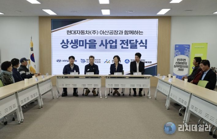 리치데일리 김상현 기자 | 아산시 인주면은 현대자동차(주) 아산공장, 아산시노인종합복지관과 함께 지역 어르신들의 복지 향상을 위한 상생마을사업 전달식을 개최했다.