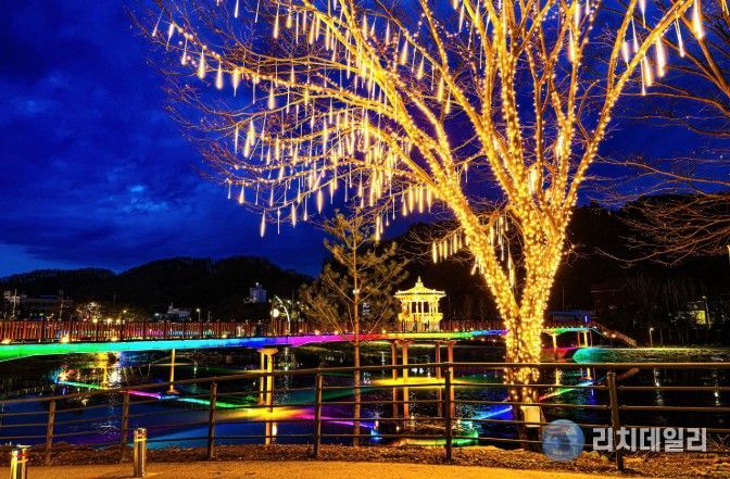 리치데일리 김상현 기자 | 괴산군 오작교 일원이 야간 경관조명으로 새로운 볼거리를 선사하고 있다.