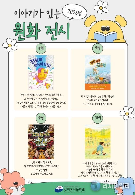‘2026년 이야기가 있는 원화 전시’ 관련 자세한 사항은 삼척교육문화관 어린이자료실로 문의하면 된다.