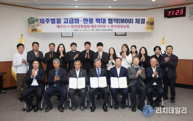 리치데일리 김상현 기자 | 제주시는 4월 1일 시청 본관 회의실에서 한국양봉농협, 한국양봉협회 제주시지부와 함께 ‘제주벌꿀의 고급화와 판로 확대를 위한 업무협약’을 체결했다.