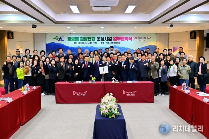 리치데일리 김상현 기자 | 속초시는 2026년 4월 1일 시청 대회의실에서 영랑호 관광단지 조성사업의 성공적인 추진을 위해 민간사업자인 ㈜신세계센트럴과 업무협약을 체결했다.