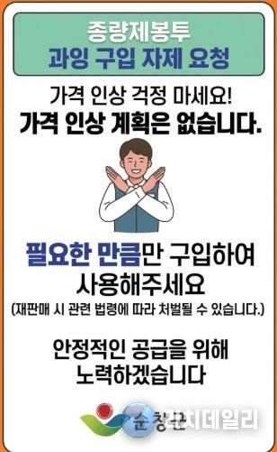 최근 일부 지역에서 원료 수급난에 따른 봉투 부족이나 가격 인상을 우려한 사재기 움직임이 나타나고 있으나, 순창군은 현재 충분한 재고를 확보하고 있어 공급에는 문제가 없다는 입장이다.