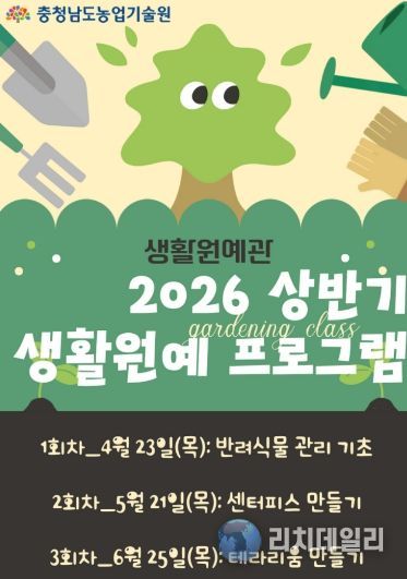 리치데일리 김상현 기자 | 충남도 농업기술원은 도민의 생활 속 식물문화 확산을 위해 ‘2026년 상반기 생활원예 프로그램’ 일반인 과정 참여자를 모집한다고 2일 밝혔다.