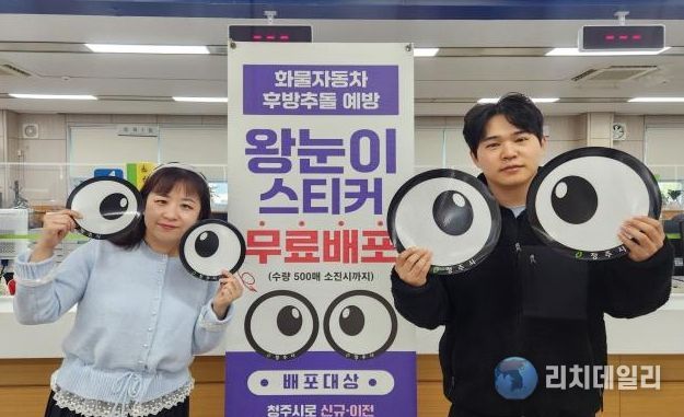 리치데일리 김상현 기자 | 청주시 차량등록사업소가 화물자동차 교통사고 예방을 위해 ‘왕눈이 스티커’를 제작·배포하고 있다.