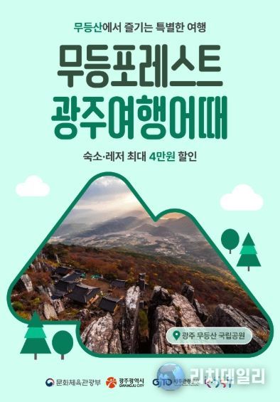 온라인 여행 플랫폼 ‘여기어때’에서 숙박 최대 3만원, 레저 이용권 최대 1만원 등 1인당 최대 4만원까지 추가 할인을 받을 수 있다. ‘무등포레스트’는 문체부와 광주시가 함께 자연과 도심을 함께 즐길 수 있는 광주지역 관광자원을 활용해 방문객 체류 시간을 늘리기 위해 추진하고 있다.
