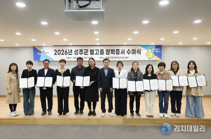 한편, 성주군은 이번 2026년 제1차 별고을장학생 선발을 시작으로, 9월중 초‧중‧고등학생 172명, 12월중 예체능 우수자 37명 정도를 추가 선발할 예정이며, 해마다 240여명의 별고을장학생을 선발하여 2억원 정도의 장학금을 지급하고 있다.
