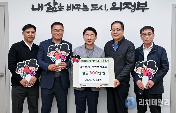 리치데일리 김상현 기자 | 의정부시는 4월 1일 의정부시 개인택시조합이 성금 300만 원을 기탁했다고 밝혔다.