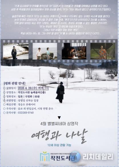 올해 첫 번째 상영은 오는 4월 29일 저녁 7시에 작전도서관 늘배움터(2층)에서 영화 '여행과 나날'을 상영한다.
