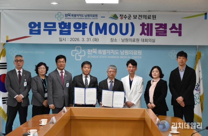 리치데일리 김상현 기자 | 장수군 보건의료원은 지난 31일 남원의료원과 의료취약지역 응급환자의 신속하고 안전한 직접 이송·치료 연계 및 장수지역 공공보건의료 협력 강화를 위한 업무협약을 체결했다고 밝혔다.