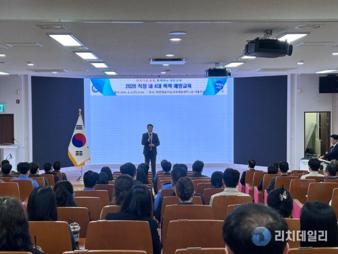 리치데일리 김상현 기자 | 충청남도태안교육지원청(교육장 지재규)은 지난 1일 태안해양경찰서와 함께 소속 직원을 대상으로 ‘직장 내 4대 폭력예방 통합교육’을 실시했다.