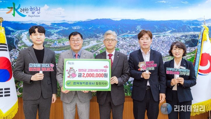 김윤철 합천군수는 “농어촌공사 합천지사의 꾸준한 참여와 나눔 실천에 깊이 감사드린다”며 “고향사랑기부제가 지역 발전의 든든한 기반이 될 수 있도록 더욱 내실 있게 운영해 나가겠다”고 밝혔다.