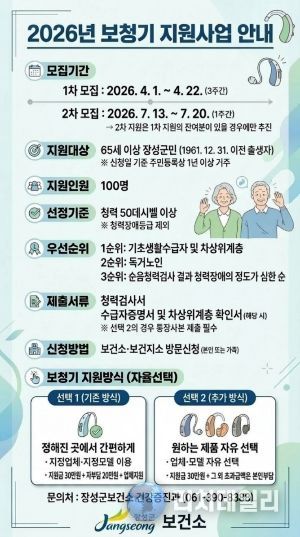 리치데일리 김상현 기자 | 장성군이 올해부터 어르신 보청기 지원사업에 ‘선택형 지원 방식’을 도입한다.