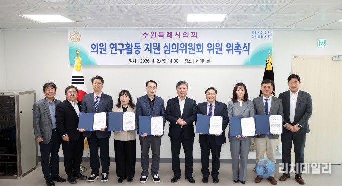 리치데일리 김상현 기자 | 수원특례시의회는 지난 2일 의회 세미나실에서 수원시의회 의원 연구활동 지원 심의위원회 위원 위촉식을 개최했다.