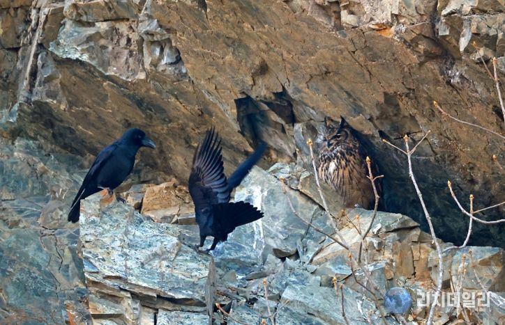 리치데일리 김상현 기자 | 울산시 울주군 절개지 암벽에서 천연기념물이자 멸종위기 야생생물 Ⅱ급인 수리부엉이가 새끼 4마리를 성공적으로 길러내는 장면이 포착됐다.