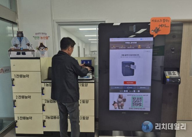 그동안 농업환경연구관은 1층 종합검정실(토양·가축분뇨·농업용수)과 2층 농산물안전분석실(농산물 잔류농약)에서 시료를 각각 접수해 왔으나, 이번에 통합 접수 시스템을 도입해 일괄 접수가 가능한 키오스크를 설치했다.