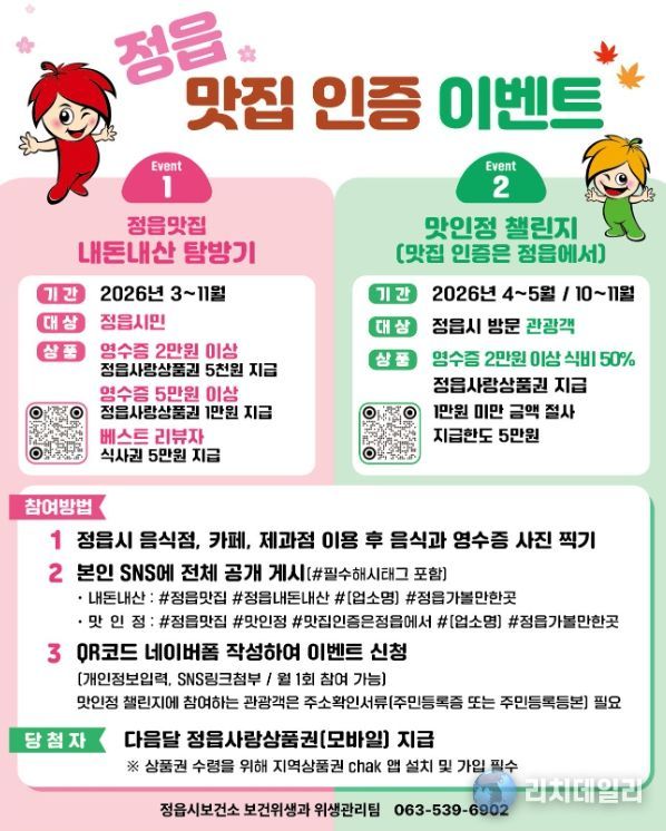 해당 이벤트 안내·QR코드는 정읍시청 누리집, 공식 SNS 채널, 또는 각 업소에 비치된 안내 게시물에서 확인할 수 있다.