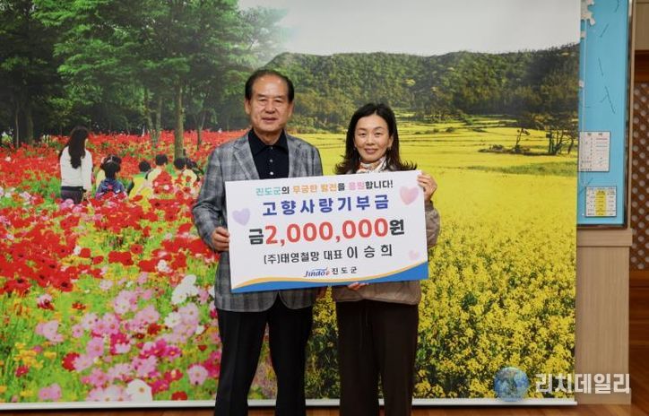 리치데일리 김상현 기자 | 진도군에 소재하는 ㈜태영철망의 이승희 대표는 지난 3월 30일 진도군청을 방문해, 지역 발전과 군민의 복리 증진을 위해 고향사랑기부금 200만 원을 기부 했다.