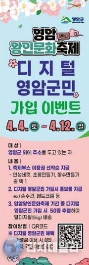 김선미 영암군 인구청년과장은 “디지털 영암군민은 누구나 1분이면 간편하게 가입할 수 있다”며 “축제를 찾은 방문객들이 디지털 군민이 되어 영암과 지속적인 인연을 이어가길 바란다”고 말했다.
