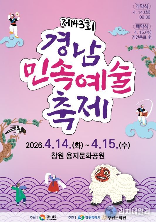 리치데일리 김상현 기자 | 창원특례시는 오는 4월 14일부터 15일까지 이틀간 창원 용지문화공원에서 “제43회 경남민속예술축제”를 개최한다고 밝혔다.