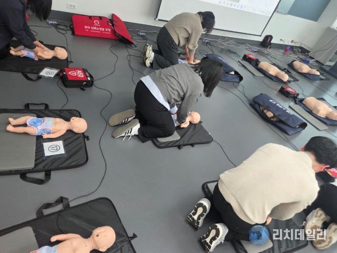 이번 교육은 '어린이 안전관리에 관한 법률'에 따라 어린이 이용시설(만 13세 미만 어린이가 주로 이용하는 시설) 종사자가 필수로 이수해야 하는 교육으로, 영아 및 소아 심폐소생술, 기도폐쇄 응급조치(하임리히법) 등 실습 교육으로 진행됐다.