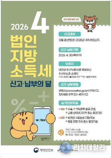 리치데일리 김상현 기자 | 인천시 서구는 2025년 귀속 법인지방소득세 집중신고 기간을 4월 30일까지 운영한다고 밝혔다.