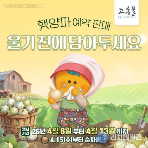 리치데일리 김상현 기자 | 고흥군이 운영하는 온라인 쇼핑몰 ‘고흥몰’은 제철을 맞은 고흥산 햇양파를 보다 합리적인 가격으로 선보이기 위해 ‘거금도 햇양파’ 예약 주문 판매를 4월 6일부터 13일까지 진행한다고 밝혔다.