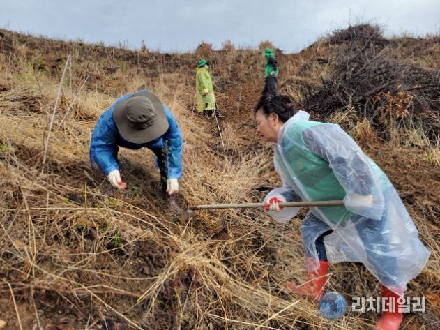 이번 행사에는 새마을회 회원을 비롯해 바르게살기운동 회원, 지역 주민 등 50여 명이 참여해 산불 등으로 훼손된 산림에 낙엽송 1000그루를 심었다.