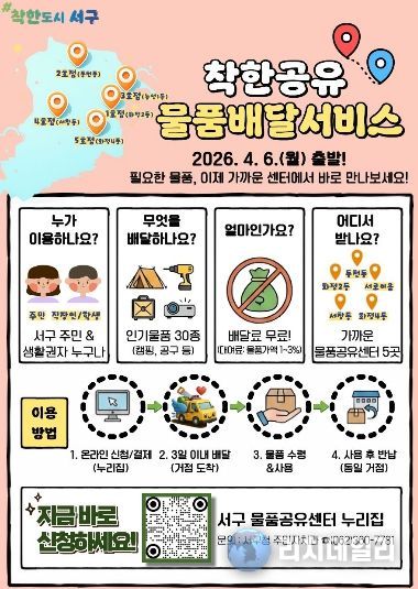 서구는 현재 화정2동, 화정4동, 동천동, 농성1동, 서창동 등 관내 5개소에 물품공유센터를 구축‧운영 중이며 주민 누구나 생활용품을 보다 쉽고 편리하게 이용할 수 있는 기반을 마련했다. 이번 퀵 쉐어 서비스는 주민이 물품공유센터 누리집을 통해 원하는 물품을 신청하면 3일 이내에 이용자가 지정한 가장 가까운 공유센터로 물품을 이동·배달해주는 방식으로 운영된다. 이에 따라 주민들은 여러 센터를 직접 찾아다닐 필요 없이 생활권 내 가까운 거점에서 편리하게 물품을 수령할 수 있다.