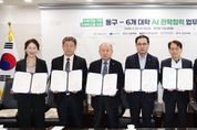 리치데일리 김상현 기자 | 대전 동구는 25일 대전대학교, 우송대학교, 대전과학기술대학교, 대전보건대학교, 우송정보대학, 한국폴리텍Ⅳ대학 대전캠퍼스와 ‘인공지능(AI) 기반 지역혁신을 위한 관학협력 업무협약’을 체결했다고 밝혔다. 이날 협약식에는 박희조 동구청장을 비롯해 남상호 대전대학교 총장, 진고환 우송대학교 총장, 이정화 대전보건대학교 총장, 손동현 우송정보대학 총장, 양형규 한국폴리텍Ⅳ대학 대전캠퍼스 학장 등 주요 관계자들이 참석해 협력 의지를 다졌다. 이번 협약은 AI 기술을 행정과 지역사회 전반에 접목해 공공 서비스의 질을 높이고, 지역 대학과의 협력을 통해 연구·교육·정책을 유기적으로 연계하기 위해 추진됐다. 협약에 따라 각 기관은 ▲AI 기반 행정 혁신 및 지역문제 해결을 위한 공동사업 추진 ▲AI 인재 양성 교육 ▲대학생 취·창업 연계 ▲주민 대상 AI 기초교육 및 체험 운영 등을 중심으로 협력 사업을 본격 추진할 계획이다. 또한, 구는 이를 바탕으로 행정 혁신을 한층 가속화하고, 지역 미래인재 양성과 산업 경쟁력 강화를 위한 기반을 단계적으로 확충해 나갈 방침이다. 박희조 동구청장