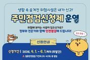 리치데일리 김상현 기자 | 고성군은 2026년 집중안전점검 기간(4월 20일~6월 19일) 동안 군민이 직접 참여하는'2026년 집중안전점검 주민점검신청제'를 운영한다고 밝혔다. '주민점검신청제'는 집중안전점검 과정에 군민이 직접 생활 속 위험요소를 조기에 발굴하여 점검신청을 할 수 있도록 마련됐으며, 안전점검이 필요한 시설물 등에 대하여 군민의 의격을 적극 수렴하여 사각지대 해소를 위한 제도이다. 특히 올해는 전년도보다 한층 더 활성화하여 안전취약계층 및 민생중심시설 등을 중점으로 추진하여 예방 중심의 안전관리체계를 강화하는 데 가장 큰 목적을 두고 있으며, 군민들의 적극적인 참여를 통해 생활 속 안전 사각지대를 해소하고 행정과 군민이 함께 만들어가는 예방 중심의 안전관리체계를 강화할 방침이다. 점검대상은 △공장시설 △공동주택 △숙박시설 △다중이용시설 △체육시설 등 행정안전부에서 지정한 20종 시설유형과 안전취약계층 및 민생중심시설 등으로 사회적 관심에 발맞추고 실생활과 밀접한 다양한 시설이 해당된다. 군민들은 읍면사무소를 방문하거나 안전신문고 앱, 포털을 통해 점검 시설물을 신청할 수 있으며,