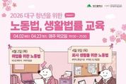 리치데일리 김상현 기자 | 대구광역시는 지역 청년들의 노동권 보호와 법적 권리 인식 제고를 위해 ‘대구 청년을 위한 노동법·생활법률 교육’을 오는 4월부터 본격 추진한다. 이번 교육은 대구 미취업 청년, 사회 초년생, 청년 창업가를 대상으로 하며 2026년 4월부터 11월까지 총 3개 시즌으로 나눠 운영된다. 시즌별 4회씩, 총 12회의 전문가 교육 프로그램이 진행될 예정이며, 시즌1 교육 프로그램은 4월 2일부터 4월 23일까지 매주 목요일 오후 7시부터 9시까지 진행된다. 교육 내용은 청년들의 취업 전·후, 퇴사 시, 창업 등 진로 선택에 맞춰 구성돼 근로계약서 작성, 최저임금, 연차 사용 등 노동법과 임대차계약, 부동산 권리, 저작권 등 생활법률 정보를 제공하는 데 중점을 둔다. 특히 강의와 함께 질의응답 및 상담도 병행해 참여자들이 실제로 겪는 법률 문제에 대해 실질적인 도움을 받을 수 있도록 구성했다. 아울러 청년들의 관심이 높은 주요 법률 이슈를 보다 쉽게 이해할 수 있도록 명사 초청 방식의 청년 법률특강도 2회 진행할 예정이다. 교육은 대구시청년센터 공감그래에서 진행되며,