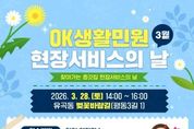 리치데일리 김상현 기자 | 울산시는 ‘2026년 오케이(OK)생활민원 현장서비스의 날’을 오는 3월 28일 중구 유곡동을 시작으로 본격 개시한다고 밝혔다. ‘오케이(OK)생활민원 현장서비스의 날’은 시민들이 일상생활 속에서 체감하고 만족할 수 있는 행정 서비스를 제공하기 위해 공원이나 아파트단지 등 주거 밀집지역을 직접 찾아가 생활 속 불편을 해결하는 울산시의 대표적인 ‘울부심 생활+’ 사업(프로젝트)이다. 올해 첫 행사는 3월 28일 오후 2시부터 4시까지 중구 유곡동 벚꽃바람길에서 열린다. 이날 현장에서는 주민 수요가 가장 높은 ▲칼갈이(1인 2자루) ▲화분 초화 심기(분갈이, 1인 1개) ▲자전거 수리 ▲나무도마 수선 및 체험 ▲선풍기 단순 수리(15대 한정) ▲장난감 수리 ▲반려동물 위생 관리 등 다양한 서비스를 제공한다. 특히 올해는 제9회 전국동시지방선거 일정에 따라 지자체장의 선거에 영향을 미치는 행위 금지 기간(4월 4일~6월 3일)을 준수하여 전체적인 행사 운영시기가 조정됐다. 이에 따라 중구에서는 3월 28일 유곡동과 4월 3일 복산동 도화공원에서 우선 운영한 뒤,