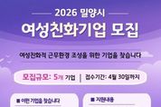 리치데일리 김상현 기자 | 경남 밀양시는 여성의 경제활동 참여를 독려하고, 일과 가정이 조화로운 기업 문화를 확산하기 위해 오는 4월 30일까지 ‘2026년 밀양형 여성친화기업’을 모집한다. 경남 도내 최초로 도입된 밀양형 여성친화기업 인증제도는 여성 근로자가 일하기 좋은 환경을 갖춘 기업을 발굴·인증하고, 다양한 행정·재정적 인센티브를 제공함으로써 지역 내 여성 친화적 고용 환경을 조성하는 데 목적이 있다. 신청 대상은 밀양시에 사업장을 두고 있으며, 근로자 5인 이상 기업 중 여성 근로자 비율이 20% 이상인 곳이다. 참여를 희망하는 기업은 4월 30일까지 밀양시 여성가족과로 방문하거나 우편 또는 이메일을 통해 신청서를 제출하면 된다. 시는 접수된 기업을 대상으로 현장 실사를 거쳐 최종 인증 기업을 선정할 계획이다. 인증 기업에는 연차별로 ▲1년 차에는 기업환경개선 지원 ▲2년 차부터는 여성친화 직장문화 조성 지원 등 단계별 인센티브를 지원한다. 이 외에도 ▲여성친화기업 인증패 수여 ▲찾아가는 양성평등 교육 ▲우수기업인 표창 추천 ▲밀양시 기업지원 보조금 사업 가점 부여 등 다양한 혜택이 주어진