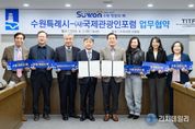 리치데일리 김상현 기자 | 수원특례시와 (사)국제관광인포럼(TITF)이 ‘글로벌 관광도시 수원’을 만들어 가기 위해 협력한다. 수원시와 (사)국제관광인포럼은 2일 시청 상황실에서 업무협약을 체결하고, ‘제5회 세계관광산업콘퍼런스 개최(6월 5일~6일)’와 ‘2026~2027 수원 방문의 해’의 성공적인 추진을 위해 협력하기로 했다. 협약식에는 이재준 수원특례시장과 국제관광인포럼 김정배 회장, 신연성 부회장, 금기형 사무총장, 신중목 후원회장, 연정아 이사 등이 참석했다. 양 기관은 협약에 따라 ‘제5회 세계관광산업콘퍼런스 공동 개최·운영’, ‘수원시 관광자원 홍보·국제 관광시장 확대 등을 협력하기로 했다. 수원시는 이번 협약을 계기로 국제 관광 네트워크를 확대하고, 수원의 관광자원과 도시 경쟁력을 세계에 알려 ‘1500만 관광객 시대’를 열 계획이다. (사)국제관광인포럼은 2013년 문화체육관광부 인가를 받아 설립된 관광 분야 전문 단체다. 국내·외 관광 전문인 간 교류 협력을 바탕으로 세계 관광산업 발전과 지속가능관광 육성을 지원하고 있다. 김정배 국제관광인포럼 회장은 “