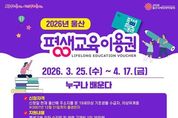 리치데일리 김상현 기자 | 울산시는 시민 누구나 평생학습의 기회를 누릴 수 있도록 ‘2026년 울산광역시 평생교육이용권(이하 이용권) 지원사업’을 본격 추진한다고 밝혔다. 이번 사업은 저소득층, 중장년, 노인, 장애인 등 다양한 계층을 대상으로 평생교육 수강료를 지원하는 제도로, 시민의 학습권 보장과 삶의 질 향상을 목표로 추진된다. 이용권 대상자로 선정되면 평생교육 강좌 수강료와 교재비로 사용할 수 있는 35만 원이 포인트로 지원된다. 대상자는 지급된 포인트로 관내 등록된 67개 사용기관의 온·오프라인 강의를 수강할 수 있다. 사용기관은 평생교육이용권 누리집에서 확인 가능하다. 올해 평생교육이용권은 총 2,404명 규모로 지원된다. 지원 대상자는 ▲저소득층 성인(19세 이상 기초생활수급자․차상위계층), 등록장애인(19세 이상)뿐만 아니라 ▲노인(65세 이상) ▲디지털 관련 평생교육 수강 희망자(30세 이상) ▲지역특화 대상자(40세 이상~65세 미만) 등 다양한 계층을 지원해 전 세대가 학습 기회를 누릴 수 있도록 할 계획이다. 우선, 1차로 울산시에 주소를 둔 19