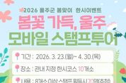 리치데일리 김상현 기자 | 울산 울주군이 봄을 맞아 오는 23일부터 다음달 30일까지 한시 관광이벤트를 진행한다고 20일 밝혔다. 이번 한시 이벤트는 다양한 연계 이벤트로 울주군 방문 관광객의 참여도와 만족도를 높이고, 체류시간과 지역소비를 확대하기 위해 마련됐다. 올해 새롭게 리뉴얼된 K스탬프투어 모바일 앱을 이용한 ‘봄꽃 가득, 울주’ 이벤트와 ‘울주와봄’ SNS 여행후기 인증 이벤트 등으로 구성됐다. ‘봄꽃 가득, 울주’ 이벤트는 울주군 내 지정 봄꽃 명소 10개소 중 8개소 이상을 방문해 스탬프를 획득한 뒤 선물을 신청하면 된다. 주요 코스는 울주군 벚꽃 명소인 △작천정 벚꽃길 △서생포왜성 △두서면 차리마을 벚꽃길 △회야강변 벚꽃길 등이다. 울주군은 이벤트 참여자 중 추첨을 거쳐 총 70명을 선정해 울주특산품을 제공한다. ‘울주와봄’ SNS 여행후기 인증 이벤트는 ‘봄꽃 가득, 울주’ 이벤트 코스 중 1개소의 사진과 울주군 숙박시설, 식당, 카페 중 1개소 영수증을 첨부해 개인 SNS(인스타그램)에 게시하면 된다. 여행후기 작성자 중 70명을 추첨해 울주