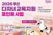 리치데일리 김상현 기자 | 부산시는 부산시교육청과 함께 학령기 자녀를 둔 다자녀 가정을 지원하기 위한 '부산 다자녀 교육지원포인트' 사업을 추진한다고 밝혔다. 다자녀 가정의 교육비 지출 부담 완화를 위해 시와 시교육청이 7대 3으로 재원을 분담해 운영하는 사업으로 2024년 시작해 올해로 3년째 추진된다. 지난해 12만 2천여 다자녀 가정에 총 414억 원을 지원했으며, 공공마이데이터 연계를 통해 신청·심사 절차를 간소화한 결과 절차 만족도가 2024년도 76.1%에서 91.6%로 크게 개선되는 등 이용 편의성과 정책 체감도가 높아진 것으로 나타났다. '부산 다자녀 교육지원포인트'는 소득·재산 기준과 관계없이 자녀 1명 이상이 2008∼2019년생(초·중·고 학령)에 해당하는 부산시 다자녀가정이면 누구나 지원받을 수 있다. 지원 규모는 2자녀 가정에 30만 원, 3자녀 이상 가정에 50만 원의 교육지원포인트가 지급된다. 다만, 부산 시민 혜택 제공을 위해 신청인 주민등록 기준 최소 3개월 이상 부산시에 거주해야 한다, 교육지원포인트는 부산 지역화폐 동백전의 정책지원금으로