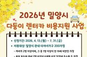 리치데일리 김상현 기자 | 경남 밀양시는 다자녀 가정의 이동 편의를 돕고 가족이 함께하는 여가 문화를 조성하기 위해 ‘2026년 밀양시 다둥이 렌터카 비용 지원 사업’을 추진한다고 밝혔다. 이번 사업은 고향사랑기부금을 재원으로 활용하여 진행된다. 다자녀 가정에 렌터카 대여료 등을 지원함으로써 아이들과 함께 소중한 추억을 쌓을 기회를 제공하고, 가족 간 유대감을 강화하는 데 목적이 있다. 신청 대상은 자녀가 2명 이상인 가정(그중 1명 이상은 만 19세 미만)으로, 부모 모두와 자녀 2명 이상이 신청일 기준으로 6개월 이상 밀양시에 주민등록을 두고 거주 중인 가정이다. 지원 내용은 렌터카 대여료를 비롯해 카시트 대여료, 차량 보험료 등이 포함되며, 지원 금액은 2자녀 가정 최대 30만 원, 3자녀 이상 가정 최대 40만 원이다. 선정된 가정은 지원 결정일로부터 3개월 이내에 렌터카를 이용하고 비용 지원을 신청해야 한다. 사업 신청 기간은 4월 13일부터 7월 31일까지이며, 거주지 읍·면·동 행정복지센터를 방문해 신청할 수 있다. 단, 예산 소진 시 조기에 마감될 수 있다. 아울러 밀양시
