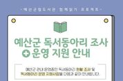 리치데일리 김상현 기자 | 예산군 공공도서관은 지역 내 독서동아리 활동을 체계적으로 지원하고 독서공동체 기반을 넓히기 위해 ‘2026 독서동아리 운영 지원사업’을 추진한다. 군은 오는 4월 1일부터 30일까지 관내 독서동아리를 대상으로 현황조사와 지원사업 신청을 동시에 접수하며, 이를 통해 지역 내 동아리 활동 실태를 파악할 계획이다. 원활한 실태 파악을 위해 현황조사에 참여하는 독서동아리에는 2026년 동안 예산군립도서관 공간을 3회 무료로 대여할 수 있는 혜택을 제공한다. 지원사업은 관내에서 활동 중인 성인 5인 이상으로 구성된 독서동아리 가운데 3개 동아리를 선정해 5월부터 11월까지 운영하며, 선정된 동아리에는 군립도서관 다목적실·문화강좌실 등 활동 공간 무료 대관을 비롯해 동아리 활동 도서 구입 지원, 독서 멘토링, 작가와의 만남, 문학기행 등 다양한 독서문화 프로그램을 지원한다. 현황조사 참여 및 지원사업 신청을 희망하는 독서동아리는 안내문 내 정보무늬(QR코드)를 통해 신청서를 제출하거나 군 공공도서관 누리집에 게시된 신청서를 작성해 전자우편으로 제출하면 된다. 군 관계자는