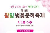 리치데일리 김상현 기자 | 광양시 금호동은 오는 4월 3일부터 4월 5일까지 금호동 조각공원 일원에서 3일간 제11회 광양벚꽃문화축제를 개최한다고 밝혔다. 올해로 11회를 맞이하는 이번 축제는 “벚꽃향 흐르는 봄날의 행복한 금호동”이라는 슬로건 아래 지역주민과 관광객이 함께 어우러지는 다채로운 문화행사로 꾸며질 예정이다. 축제는 개막식을 비롯해 전남드래곤즈 사인회 및 사인볼 증정, 벚꽃가요제, 벨리댄스 대회와 제철초 관현악 공연, 초대가수 무대, 가족 레크리에이션과 공연, 먹거리장터 등 다양한 프로그램이 마련됐다. 특히, 축제에서는 금호동 11개 사회단체 및 포스코 봉사단이 참여하는 다양한 봉사부스가 운영된다. 방문객들은 부침개 코너, 팝콘·뻥튀기 시식, 생맥주 시음 코너를 무료로 이용할 수 있고, 벚꽃 키링 만들기, 벚꽃 비누 만들기 체험 등 다양한 프로그램을 무료로 즐길 수 있다. 백운대 벚꽃길은 매년 봄이면 흐드러지게 핀 벚꽃으로 장관을 이루는 광양의 대표적인 벚꽃 명소로, 축제 기간 동안 방문객들은 화사한 벚꽃길을 따라 산책하며 봄의 정취를 만끽할 수 있다. 또한 야간에는 벚꽃경관 조명과 함